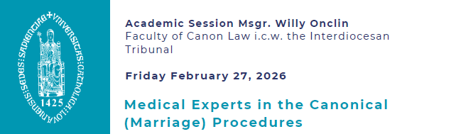On Friday Februari 27, 2026, the Faculty of Canon Law will host the annual academic session Msgr. Willy Onclin in collaboration with the Interdiocesan Tribunal.